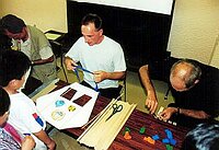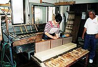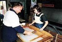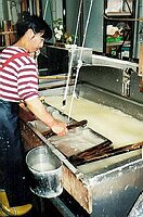 |   handgeschöpft werden ... |  ... ca. 1000 Blatt Papier am Tag |  auch selbst dürfen wir es versuchen |