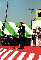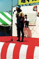 |   Eröffnungsrede von Ohje Makoto |   Minoru Fujita Chairman der Echu Diamon Kite Association |   |